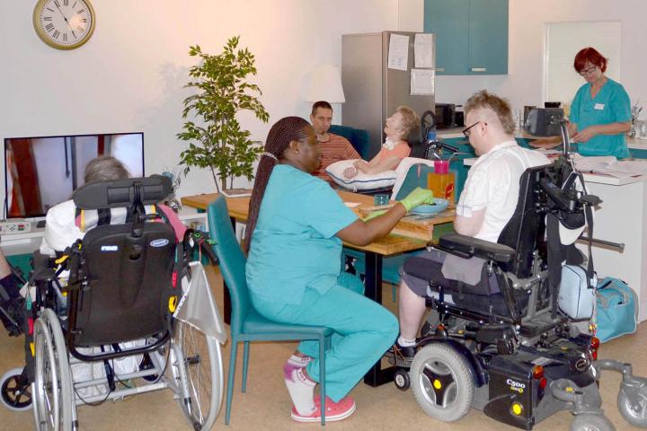 In den barrierefreien und rollstuhlgerechten Räumlichkeiten finden Menschen, die Hilfe benötigen ein neues und sicheres Zuhause. Jeder Bewohner verfügt über einen Privatbereich, der auf Wunsch individuell eingerichtet werden kann. Für ein lebendiges Miteinander stehen gemütliche Gemeinschaftsbereiche zur Verfügung