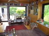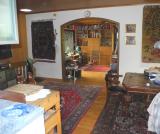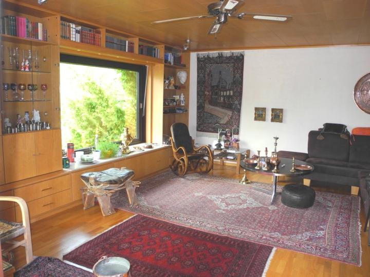 Die offene, helle Wohnraumgestaltung charakterisiert den Charme des Hauses. Diele, Esszimmer Wohnzimmer und Küche bilden eine Einheit. Vom Wohnzimmer haben Sie Zugang auf eine schöne Terrasse mit Sonnenuntergang. Eine Wendeltreppe führt von dort in den alt eingewachsenen Garten mit Obstbäumen und kleinem Teich. Im separaten Schlaftrackt befindet sich ein Arbeitszimmer, Bad sowie ein Schlafzimmer mit Ankleide. Das Bad ist Seniorengerecht. Durch die Hanglage ist das Haus im UG mit Kellerräumen sowie mit einem Wohnbereich ausgestattet. Ideal für Kinder oder auch für eine Pflegekraft. Ein großes Schlafzimmer (früher 2 Kinderzimmer), ein gemütlicher Kaminraum mit offenem Kamin Gästezimmer sowie Bad machen das Wohnen komplett (Kaminzimmer und Gästezimmer im Grundriss urspr. als Kellerräume geplant). Vom Kaminzimmer haben Sie Zugang über eine überdachte Terrasse in den verwunschenen Garten.