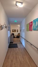 Die moderne Wohngemeinschaft umfasst rund 270 m² barrierefreie Wohnfläche und bietet großzügige, angenehme Lebensbedingungen. Zur Ausstattung zählen vollständig barrierefreie Wohnräume, ein großer Gemeinschaftsraum für soziale Aktivitäten, eine Gemeinschaftsküche sowie zwei Außenterrassen, die Raum für Erholung und Begegnung schaffen. Die räumliche Gestaltung unterstützt gleichermaßen Selbstständigkeit und gemeinschaftliches Leben.