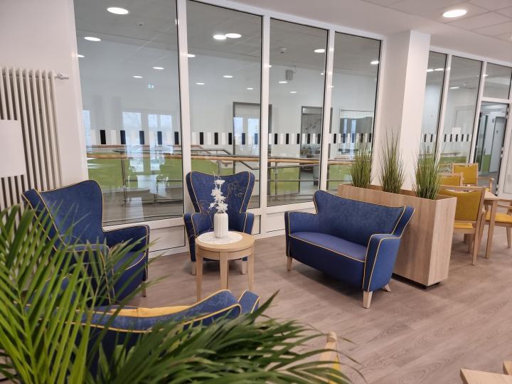 Bei steigendem Pflegebedarf und dem Wunsch nach mehr Betreuung finden sich kompetente pflegefachliche Ansprechpartner gleich vor Ort. Die Mieter werden durch den hausansässigen ambulanten Pflegedienst mit der notwendigen Grund- und Behandlungspflege versorgt und auch bei der Haushaltsführung entlastet, wenn das nötig wird. Ergänzend ist auch ein Besuch in der Tagespflege möglich, wo die Mieter tagsüber gemeinsam mit externen Gästen kochen, feiern, singen und sich bewegen können. Sollte selbstständiges Wohnen nicht mehr gelingen, befinden sich direkt im Haus zwei Pflege-WGs mit jeweils 12 Einzelzimmer und einem großen Gemeinschaftsraum. Besonders Menschen mit einer Demenzerkrankung erhalten hier die Betreuung und Zuwendung, die sie benötigen.