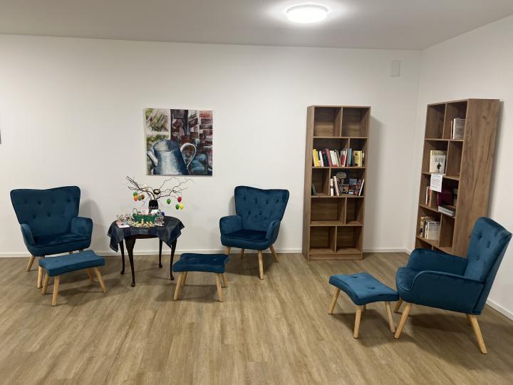 Das öffentliche Café mit Bistro im Haus stellt für die Bewohnerinnen und Bewohner den idealen Ort da, um in Gemeinschaft Kaffee und Kuchen zu genießen und sich auszutauschen oder Gäste zu empfangen.
