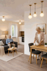 In der Service-Wohnen Parkresidenz Bad Bramstedt verbinden sich moderne Architektur, liebevolle Betreuung und ein durchdachtes Servicekonzept zu einem Zuhause mit Wohlfühlcharakter. Hier genießen Seniorinnen und Senioren die Freiheit einer eigenen Wohnung und gleichzeitig die Sicherheit, bei Bedarf Unterstützung zu bekommen. Barrierefreie Räumlichkeiten, helle Gemeinschaftsräume und eine familiäre Atmosphäre schaffen das Gefühl, angekommen zu sein – in einer Gemeinschaft, die Rückhalt gibt und Lebensfreude teilt. Durch die zentrale Lage in Bad Bramstedt mit kurzen Wegen zu Geschäften, Ärzten und Grünanlagen bleiben Selbstständigkeit und Teilhabe selbstverständlich Teil des Alltags.