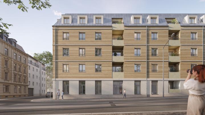 In der Dieskaustraße 64-68 entsteht bis zum 2. Quartal 2026 eine moderne Wohnanlage für Senioren mit insgesamt 89 barrierefreien Wohnungen. Der Neubaukomplex in Holzhybrid-Bauweise, bestehend aus zwei Gebäudeteilen mit Vorder- und Hinterhaus, befindet sich im Westen von Leipzig – im Stadtteil Kleinzschocher.