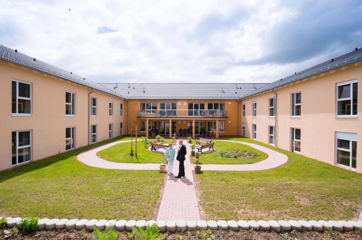 Anspruchsvolle Architektur, altengerechte Ausstattung, geräumige Zimmer mit kleiner Diele und Bad, ansprechende Wohnbereiche mit modernen Küchen und Essecken mit Terrasse, Zugang zum Garten oder Balkon: hier lässt es sich gut leben. Das Ende 2012 eröffnete Haus bietet gehobenen Wohnkomfort verbunden mit den Anforderungen an eine komplett barrierefreie Pflegeeinrichtung.