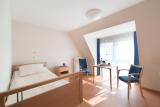 Die Gestaltung der Zimmer sollte grundsätzlich durch die Bewohner und weitestgehend mit eigenen Möbeln erfolgen. Eine zweckmäßige Möblierung mit Pflegebett,Nachttisch und Kleiderschrank ist vorhanden. Ansonsten ist eine individuelle Gestaltung möglich und erwünscht. Die Einzelzimmerappartements sind ca. 22 Quadratmeter groß und mit Dusche/WC ausgestattet.