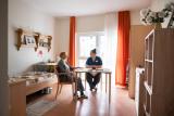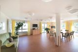Auf jeder Etage befinden sich für jede Hausgemeinschaft gemütlich eingerichtete Aufenthaltsräume. Hier ist der Wohnmittelpunkt, wo auch Mahlzeiten vorbereitet und eingenommen werden. Die Wohn- und Pflegebereiche sind über Fahrstuhl zu erreichen und mit behindertenfreundlichen, d.h. für Rollstuhlfahrer ausgerüsteten Toiletten, Duschen und Bädern ausgestattet.