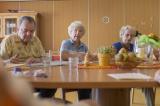 In vier Gruppen leben jeweils dreizehn Bewohner in einer Hausgemeinschaft. Hier ist die Hauswirtschaft nicht ausgegrenzt, sie bestimmt im den Tagesablauf der Hausgemeinschaft. Angefangen von der Überlegung, was gekocht werden soll, über das Einkaufen bis hin zum gemeinsamen Kochen, Essen und Aufräumen. Treffpunkt ist die großzügig ausgestattete, gemütliche Wohnküche. Auf 60 Quadratmetern kann gekocht, gebacken und gegessen werden. Hier trifft man sich zum Plaudern und Freizeitpläne schmieden. Außerhalb der Mahlzeiten wird hier gelesen, gebastelt, gespielt – ganz nach Laune. Die Wohnküche ist gleichzeitig auch die gute Stube der Gemeinschaft, wo sich das gesellige Leben abspielt. Und wem gerade nicht nach Geselligkeit ist, der kann sich in seine eigenen vier Wände zurück ziehen.
