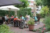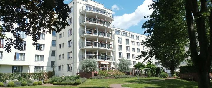 ... erwartet die Bewohner des Domicil-Seniorenpflegeheims Am Frankfurter Tor. Die Einrichtung ist von einer liebevoll angelegten Parkanlage umgeben, die mit Wasserspiel, alten Bäumen und einem Kräutergarten die Sinne anregt und zum Verweilen einlädt. Im über viereinhalb Ar großen Garten können die Bewohner sogar richtig spazieren gehen und das Grün mitten im Zentrum von Friedrichshain genießen.Die gleichzeitig zentrale Lage ermöglicht den Bewohnern gleichfalls einen Stadtbummel zu Fuß - problemlos sind Einkaufsmöglichkeiten und der Volkspark Friedrichshain erreicht.