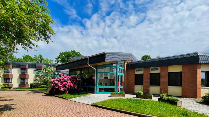Unser Haus bietet 60 pflegebedürftigen Bewohnern ein neues und komfortables Zuhause. Es ist eingebettet in ein 5.000 qm großes, wunderschönes Parkgrundstück mit kleinem Teich.