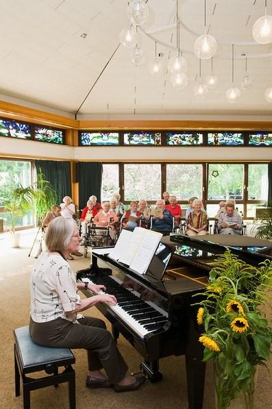 Unsere Angebote sind so vielfältig wie die Interessen vieler Menschen. Möchten Sie vielleicht mit kunstinteressierten Senioren und unter fachlicher Anleitung malen? Oder in unserem Festsaal ein Konzert besuchen? Regelmäßig laden wir auch zu Lesungen und Filmvorführungen ein. Gedächtnistraining, Gymnastik, Spielrunden, Zeitungsrunde und Dämmerschoppen, Clownbesuche und Besuche von ‚vierbeinigen Freunden‘ – all das bieten wir Ihnen in unserem Haus mit an. Für Wünsche und Anregungen haben wir und der Einrichtungsbeirat immer ein offenes Ohr. Über 50 Ehrenamtliche unterstützen uns bei Besuchsdiensten oder in unserem beliebten Café 'Sonnenberg' hoch über dem Tennelbachtal.