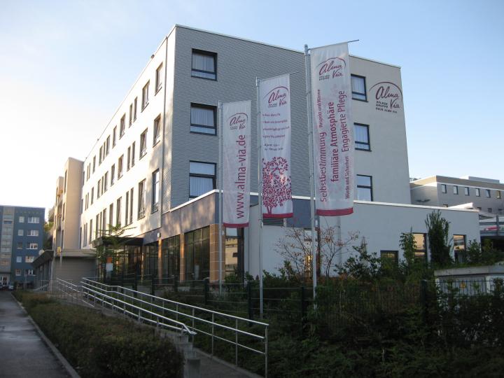 ... liegt das Haus Alma Via in einer schönen Gartenanlage und bietet Platz für insgesamt 78 Seniorinnen und Senioren. Durch die Einteilung in kleine Wohngruppen ergibt sich eine familiäre Gemeinschaft der Bewohner, und neu Zugezogene fühlen sich schnell wohl. Die Umgebung des Hauses bietet neben der schön angelegten Gartenanlage Einkaufsmöglichkeiten im nahe gelegenen Neumann Forum.