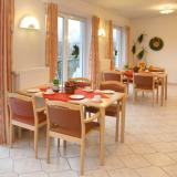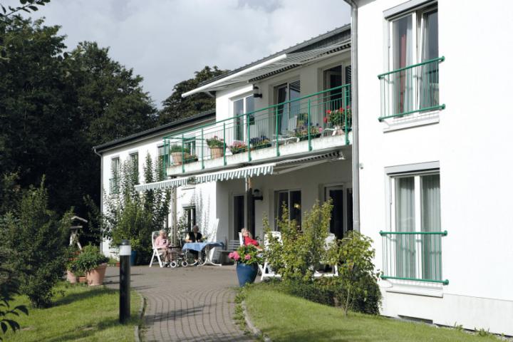 Sonnenterrassen rund ums Gebäude und dahinter riesige Grünflächen zum Wandern kennzeichnen das Haus der Betreuung und Pflege Friedrikenhof in Flensburg. Das Stadtzentrum Flensburgs mit Einkaufsmöglichkeiten, Cafés, Apotheken und Geldinstituten ist in wenigen Minuten erreichbar. Notwendige Besorgungen oder ein kleiner Spaziergang im Grünen sind also bei Bedarf problemlos zu realisieren. Bedingt durch die zentrale Lage des Flensburger Pflegeheims ist eine gute Anbindung zum öffentlichen Nahverkehr gegeben. Zur Ausstattung des Hauses zählen Küche mit Speisesaal, gemütliche Gemeinschaftsräume sowie eine Gemeinschaftsküche. Außerdem befindet sich im Haus der Betreuung und Pflege Friedrikenhof eine Bibliothek sowie ein Aufzug. Sportliche Übungen als Mobilitätstraining können im Gymnastikraum durchgeführt werden. Der faszinierende Wintergarten sorgt ebenso wie der sonstige Gartenbereich für ein besonderes Wohlfühlambiente.