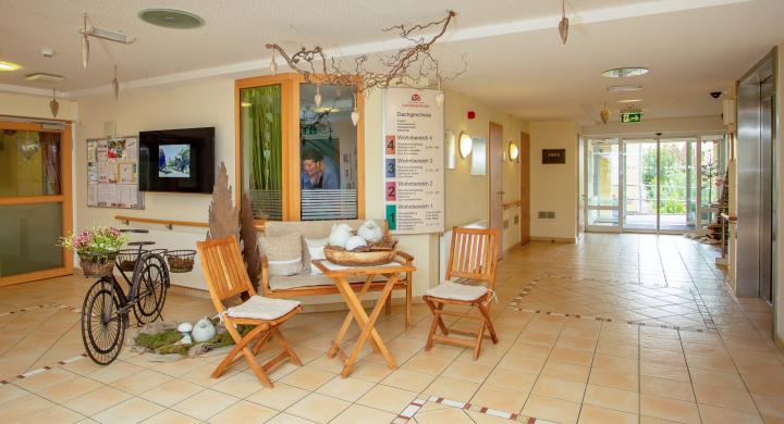 Die Residenz ist barrierefrei gestaltet, um ein sicheres und selbstbestimmtes für alle Bewohner sicherzustellen. Breite Flure mit Handläufen bieten zusätzliche Sicherheit und ein farbliches Leitsystem erleichtert die Orientierung. Ein Therapiegarten mit Hochbeeten und zahlreiche Beschäftigungsmöglichkeiten für jüngere Besucher schaffen eine angenehme Wohnumgebung für alle Bewohner. Ein Wohlfühlbad ermöglicht Entspannung und Erholung und wird ebenfalls gerne genutzt. Im behüteten Wohnbereich werden demenziell veränderte Menschen versorgt und auf ihre speziellen Bedürfnisse eingegangen.