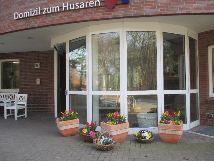 Im Domizil zum Husaren finden 93 Bewohner ein vollstationär versorgtes neues Zuhause. Speziell möblierte, fußbodenbeheizte Einzel- und Doppelapartments mit Bad und WC, auf Wunsch jedes Bett mit eigenem Telefon, können mit den eigenen Möbeln der Bewohner selbst gestaltet werden. Die Mahlzeiten werden im Restaurant oder auf Wunsch im eigenen Wohnbereich serviert. Saisonale, traditionelle aber auch gutbürgerliche Speisen bieten eine große Vielfalt, und sollte es doch mal etwas Spezielles sein - Anregungen werden gerne entgegen genommen. Nachts bietet das Domizil ein zusätzliches Angebot an hergerichteten Kaltspeisen an.
