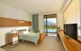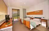 Alle Zimmer sind modern, behaglich und hochwertig eingerichtet. Man genießt einen fantastischen Ausblick zur historischen Burg von Kalamata und zum Mittelmeer oder zum Berg. Durch raumhohe Glasschiebetüren gelangt man hinaus zur überdachten Veranda mit Beleuchtung. Bei der Ausstattung wurden die kleinsten Details durchdacht. Es werden ebenfalls eine tägliche Zimmerreinigung angeboten und ein kostenloser Wäscheservice für persönliche Kleidung.Das Vollpension-Angebot umfasst fünf tägliche Mahlzeiten bzw. Snacks. Die Gerichte sind inspiriert von typischen peloponnesischen Rezepten, also einer regionalen Form der mediterranen Ernährung; diese werden sorgfältig zubereitet und sind auf die Bedürfnisse der Gäste ausgerichtet. Auf Wunsch kann jeder Gast sich auch von den Ärzten und einem Ernährungsberater ein spezielles, individuelles Ernährungsprogramm erstellen lassen.