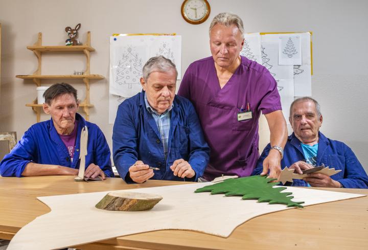 Sportliche Aktivitäten – auch für unsere Rollstuhlfahrer – verschiedene Gestaltungsarbeiten mit Farbe, Papier, Floristik, Holz, Peddigrohr und Ton in unseren Werkräumen sowie Wellnesstage, Klangschalentherapie, Gottesdienste, viele große und kleine Feste sorgen für ein umfangreiches Beschäftigungs- und Betreuungsangebot in der Einrichtung. Kontakte zu Tieren werden durch die Besuche des Freiberger Tierheimes, der Ausbildungsstätte für Therapie- und Behindertenbegleithunde sowie einer externen Hundetherapeutin angeboten. Auch das gemeinsame Singen zur Akkordeonmusik und die regelmäßigen Treffen mit Bewohnern aus anderen Einrichtungen der Stiftung Münch finden großen Zuspruch.