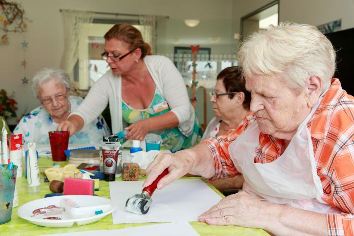 Im SANDHOFER STICH leistet das Team Pflege nach neuesten wissenschaftlichen Erkenntnissen. Die Aktionen des Sozialen Dienstes geben dem Alltag Struktur. Gedächtnistraining, Basteln und Singen sorgen für Abwechslung. Und zweimal in der Woche steht „Sport für jedermann“ auf dem Programm. Das bedeutet: Bei der Gymnastik mittwochs und beim Krafttraining donnerstags sind Senioren aus den Service-Wohnungen und aus dem Stadtteil dabei. Der Kontakt zu anderen tut vielen Bewohnerinnen und Bewohnern gut. Die gemeinsame Aktivität verbindet.