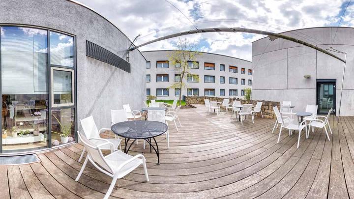 Alle Wohnbereiche verfügen über Terrassen sowie eigene Teeküchen und Speiseräume. Im Haus finden Sie darüber hinaus eine Cafeteria, einen Frisörsalon, den Festsaal und mehrere Beschäftigungsräume.