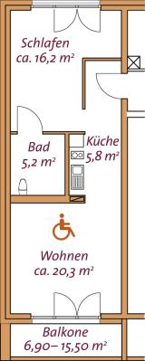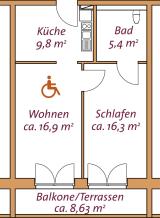 Der Sofienhof verfügt über 59 barrierefreie Wohnungen mit großzügiger Terrasse oder Balkon in sonniger Süd-West-Ausrichtung. Der besondere Zuschnitt der Wohnungen schafft ein angenehmes Wohngefühl, das durch die klare Trennung von Wohn-, Schlaf- und Essbereich unterstützt wird.