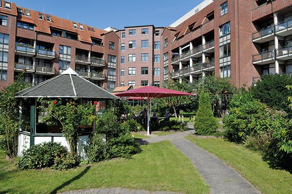 Das Seniorenzentrum „Böttcherkamp“ in Hamburg-Lurup liegt in einer ruhigen Nebenstraße mit angenehmen Ambiente, umgeben von einem Garten.