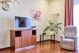 Auf 99 Pflegeplätzen, die auf 71 Einzel- und 14 Doppelzimmer verteilt sind, finden die Bewohner des Senterra Seniorenzentrums Birkenfeld ein Zuhause in einer geselligen und familiären Gemeinschaft. Überschaubar und offen sind daher auch die Wohnbereiche konzipiert.