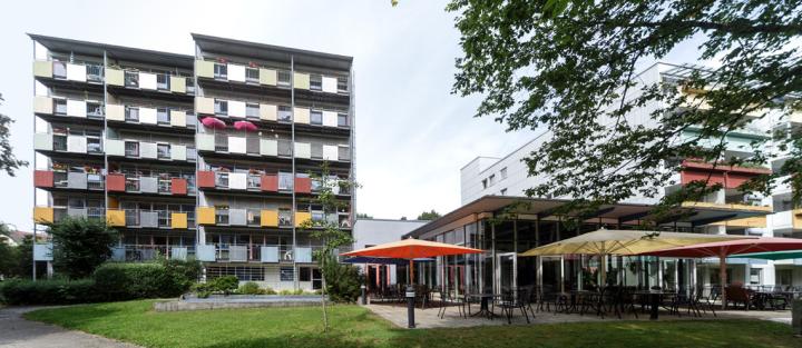 Der Standort dieser Wohnanlage lebt von den Kontrasten, die das Leben abwechslungsreich machen. Einerseits die Möglichkeit viele kulturelle und kreative Angebote mitzuerleben, auf der anderen Seite fußläufig den Siebentischwald erreichen. Die Einzel- und Doppelappartements von 33 bis 59 m² sind jeweils mit einer Loggia, kleiner Küchezeile und barrierefreiem Bad mit Dusche ausgestattet.