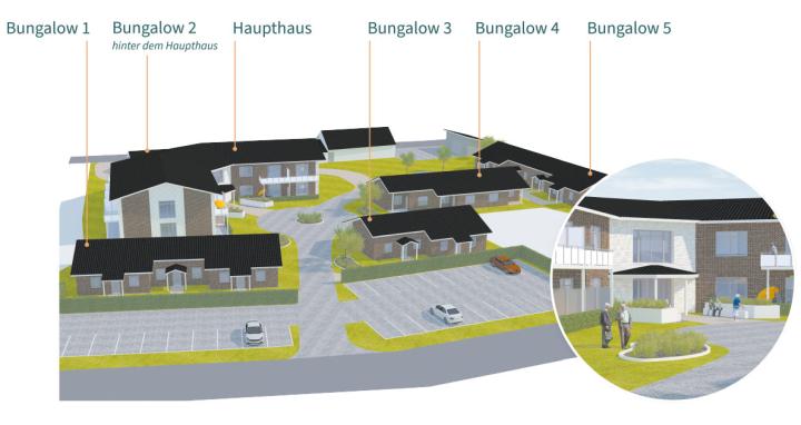 Heiligenloh ist ein charmantes Dorf im Landkreis Diepholz, welches sich bereits fünfmal den Titel „Schönstes Dorf im Landkreis Diepholz“ sichern konnte. Vor Ort gibt es einige Ausflugsziele wie beispielsweise die alte Henckemühle, Rad- und Wanderrouten oder kleine Kunstgalerien. Außerdem gibt es über das Jahr verteilt Aktionen wie den Bauern- oder Weihnachtsmarkt. In diesem dörflichen Idyll, bei ruhiger Atmosphäre und auf einer schön angelegten Grünanlage liegt der Seniorenwohnpark Heiligenloh. Dieser bietet zwei verschiedene Wohnkonzepte für das Leben im Alter. Zum einen beherbergt das großzügige Gelände sechzehn seniorengerechte und barrierefreie Bungalows für Menschen, die noch nicht pflegebedürftig sind, aber das eigene Haus und Anwesen nicht mehr bewirtschaften können oder wollen. Das Leben in den Bungalows ermöglicht den Bewohner:innen ein selbstbestimmtes Wohnen mit Unterstützung im Alltag. Auf Wunsch kann ein Hausmeister- sowie Notrufservice in Anspruch genommen werden. Alle Bungalows verfügen über eine moderne Einbauküche sowie eine eigene Terrasse, die zum Verweilen im Grünen einlädt. Je nach Bedarf gibt es drei Bungalowvarianten in den Größen 45qm, 55qm und 65qm.