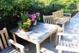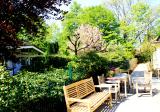 Ein parkähnlicher Garten und Terrassen laden mit vielen Sitzgelegenheiten zum Entspannen und ruhen in der Natur ein. Zudem gibt es hier die Möglichkeit auf einem speziell angelegten Weg ohne Ende spazieren zu gehen. Die zwei Terrassen sind in den Garten integriert. Gemeinsames Kaffeetrinken, Grillabende, Feste und Feiern können hier nach Belieben gestaltet werden.